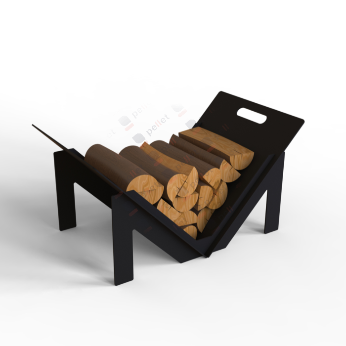 Konstrukcja w kształcie litery „V” pozwala równomiernie rozłożyć drewno, a zintegrowane uchwyty ułatwiają przenoszenie stojaka w dowolne miejsce.