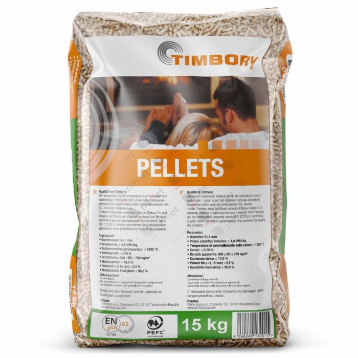 Pellet drzewny Timbory to produkt premium od renomowanego producenta Pfeifer Timber GmbH, wyróżniający się doskonałymi parametrami i certyfikatami jakości. Dzięki spełnieniu norm DINplus oraz ENplus® (CZ002) zapewnia najwyższy standard ogrzewania, idealny zarówno do domowych systemów grzewczych, jak i zastosowań przemysłowych.
